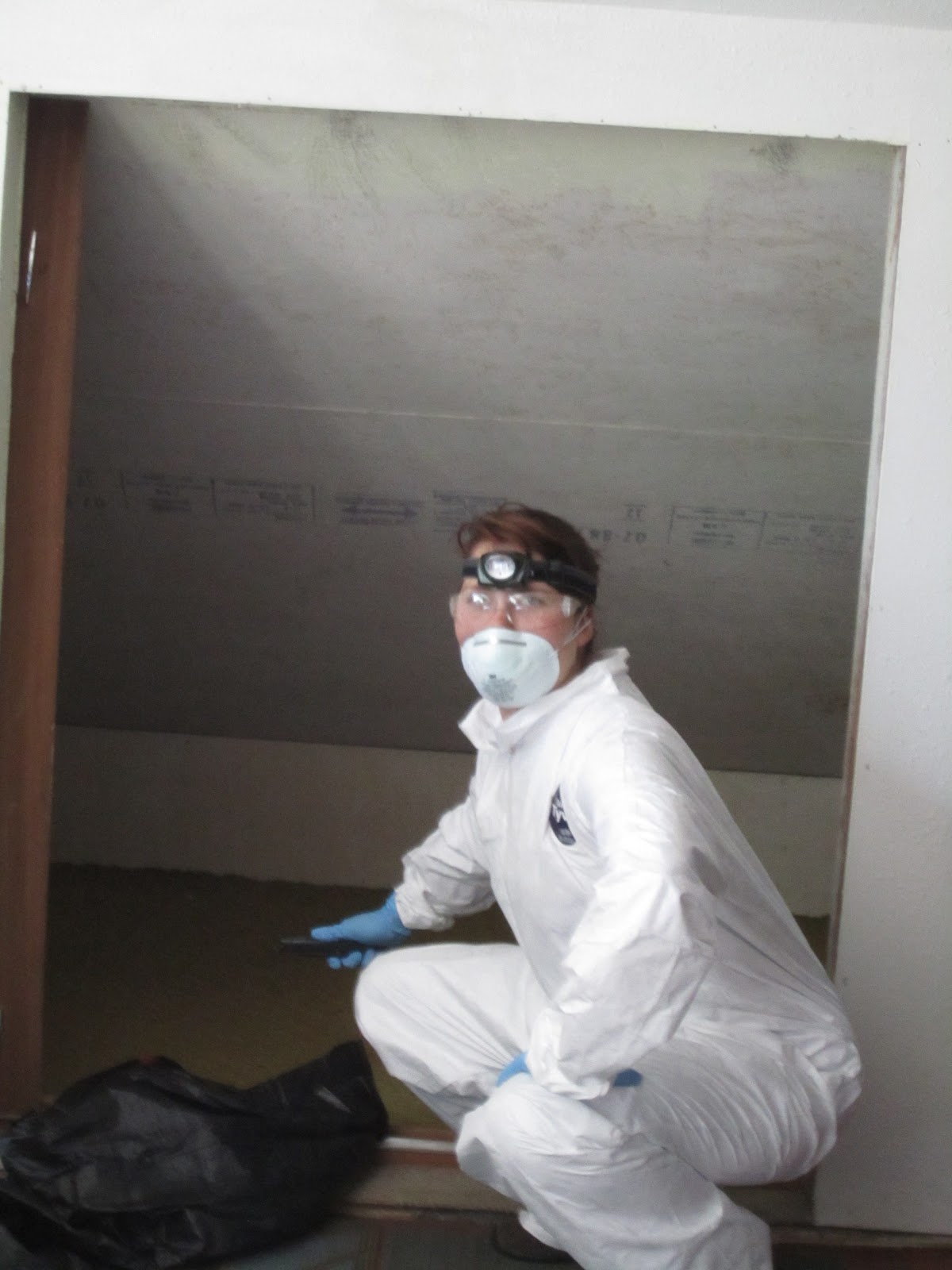By enter, I mean I put on a tyvex suit, safety glasses, gloves and a head lamp. I honestly had no idea what was back there, there was no light. Best case scenerio it was old and stinky and maybe had some old bugs. Worst case scenerio, dead body. The fact that I slept only about 10 feet from this space is actually pretty amazing. For the record, I did put furniture in front of the opening to protect myself from any real zombie moments.